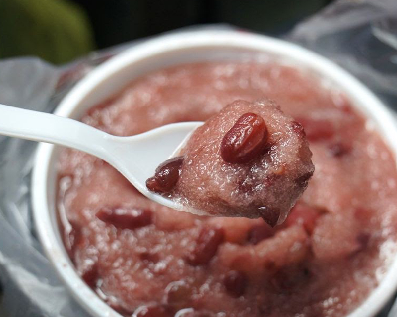 我們熬煮出來的紅豆綿綿冰,只要輕輕一抿,紅豆泥全部跑出來,口感好綿密!